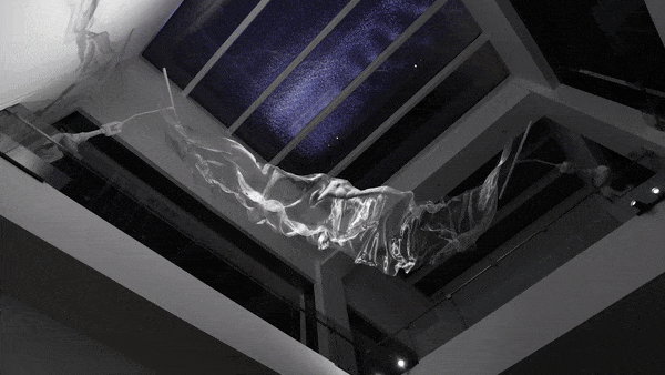 Crucially, the installation visualizes the relationship between the two agents. The system analyzes the timing and phase of the robots’ movements to generate "weather." Harmonious, in-step collaboration results in tranquil sunlight; strategic divergence or competitive "whiplash" triggers rain, mist, and lightning. Through these sensory metaphors—height and weather—Airy converts abstract control data into an emotional narrative, allowing the audience to feel the harmony or conflict of the machines before they even see the result.