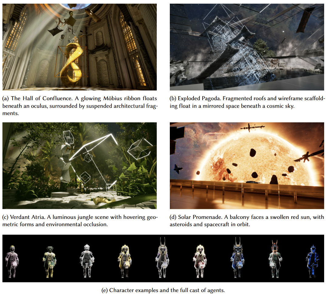- The Hall of Confluence: A glowing, abstract space featuring a floating Möbius ribbon and suspended architectural fragments.